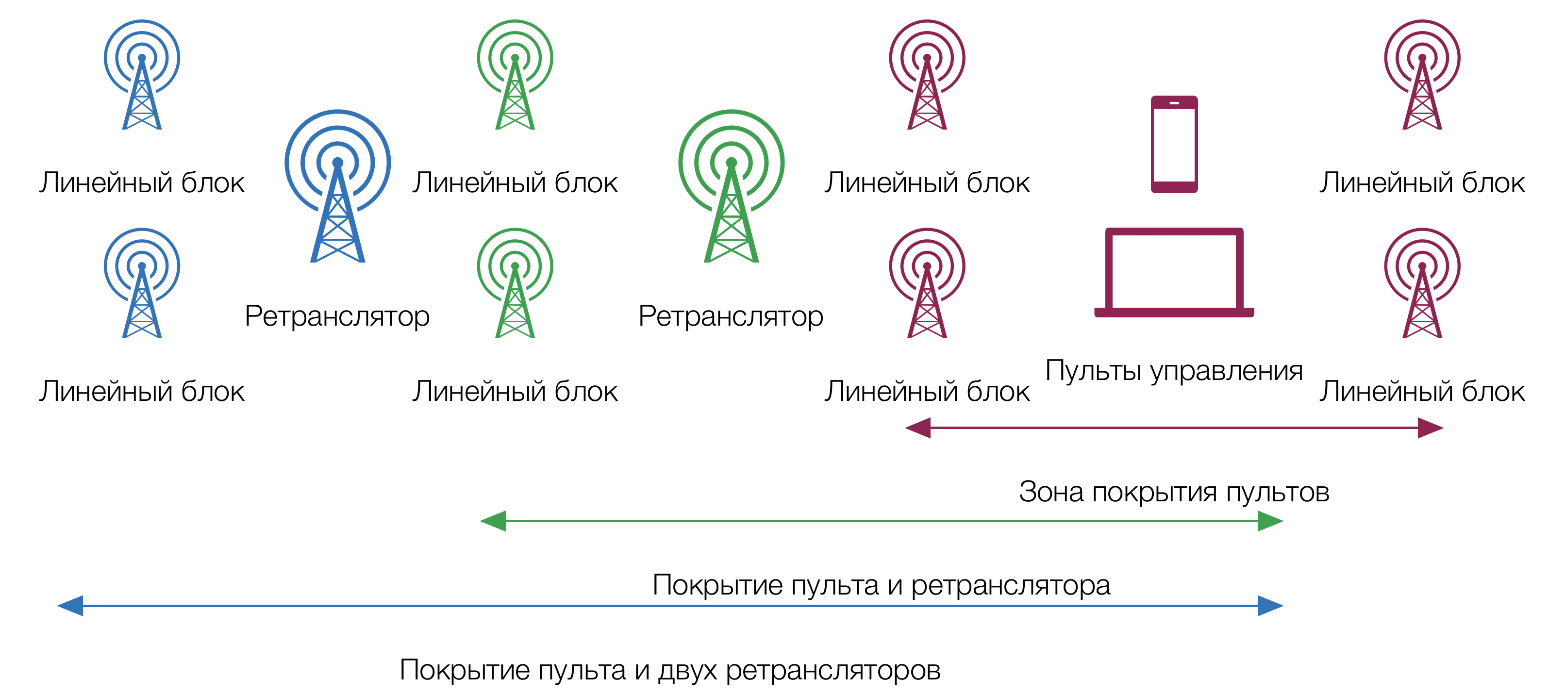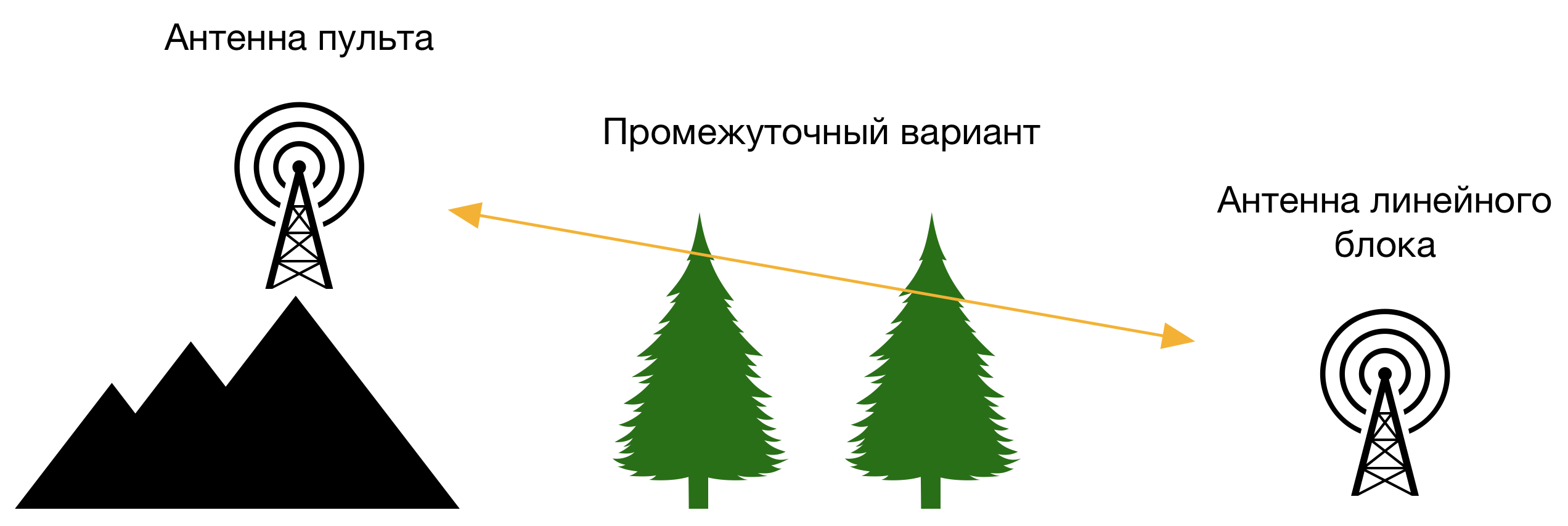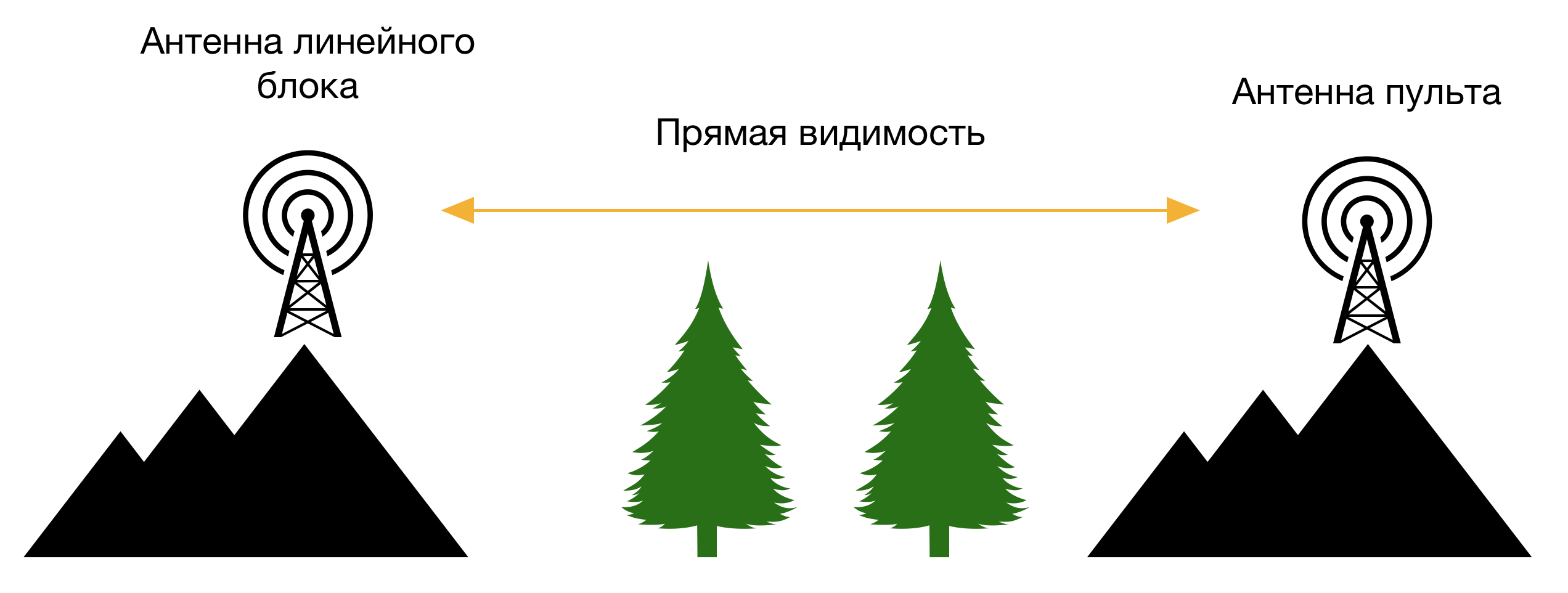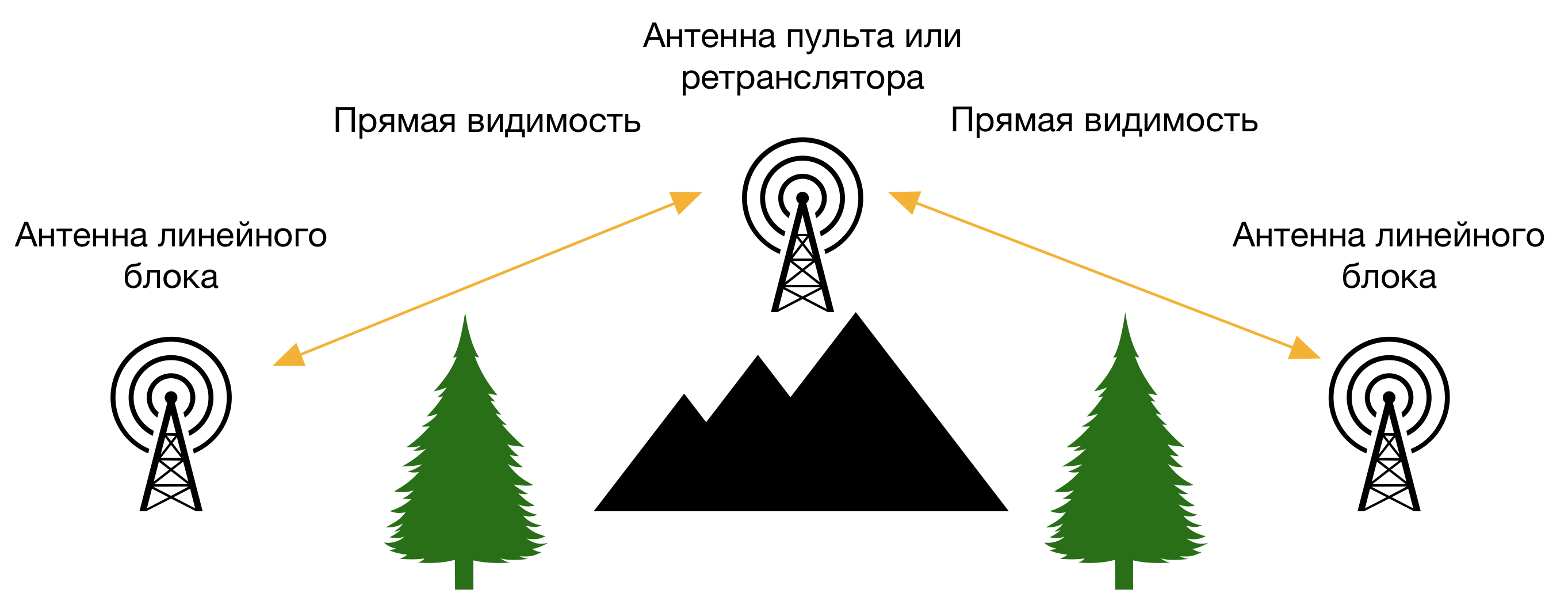При оценке дальности связи ключевым элементом является взаимное расположение антенн линейных блоков и пульта или ретранслятора: